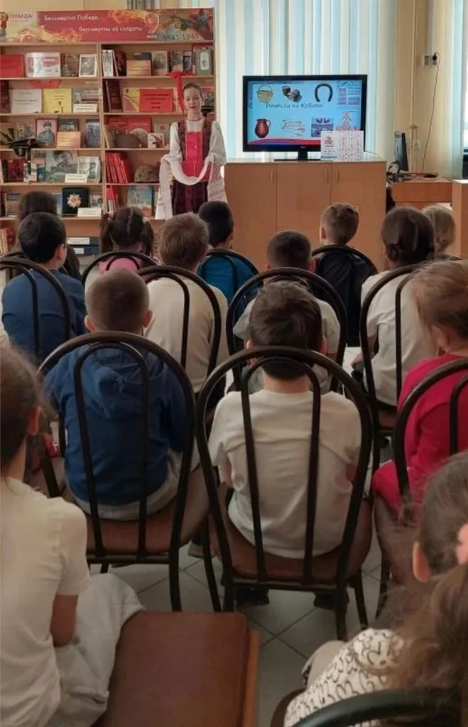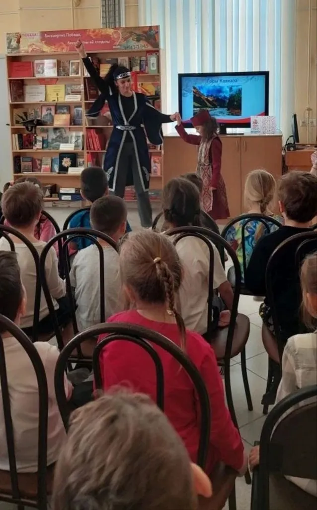 В начале мероприятия библиотекарь вместе с ведущими-волонтёрами Гайдаровки предложили юным читателям отправиться в этнографическое виртуальное путешествие по нашей стране. Ребята побывали в Поволжье, послушали сказку татарского писателя Габдуллы Тукая «Шурале», познакомились с культурой Кубани, её национальными промыслами: гончарным мастерством, соломкой и вышивкой.