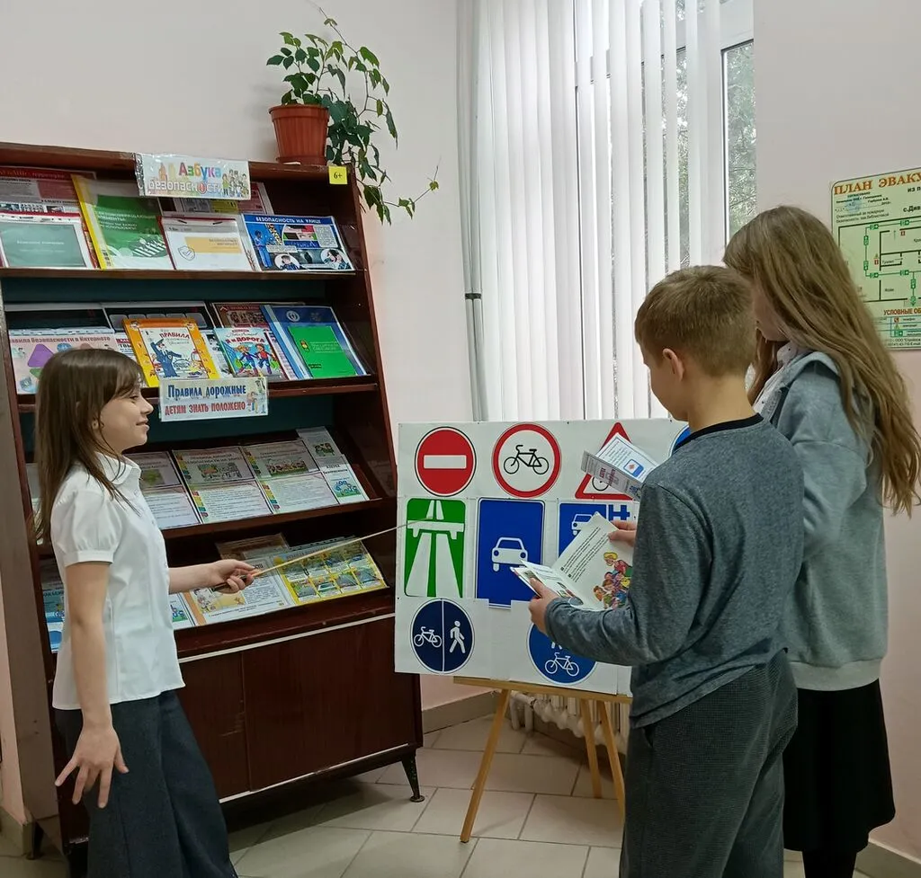 Вниманию школьников были предложены буклеты, информационные листовки и книги из фонда библиотеки: С. Волкова «Про Правила дорожного движения», П. Астахова «Я и дорога» и др.