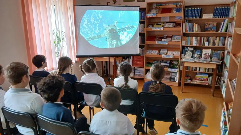 Дети посмотрели фильм о том, как проходит подготовка космонавтов к полётам, чем они питаются в невесомости, а также узнали интересные факты о жизни космонавтов на МКС.