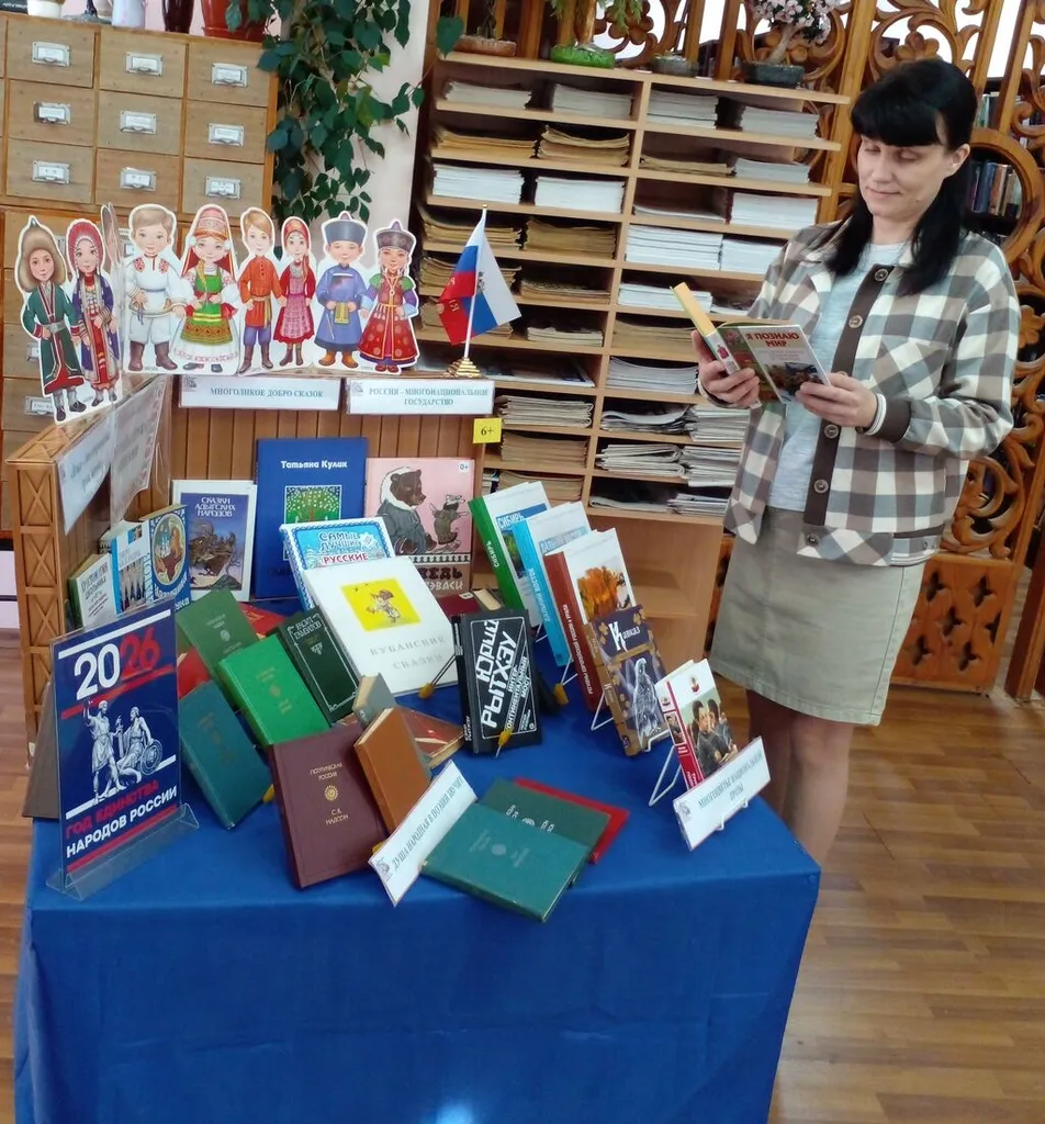 В рамках десятилетия языков коренных народов Сельская библиотека №6 с. Дивноморское подготовила книжно-иллюстративную выставку «Народы дружат книгами».