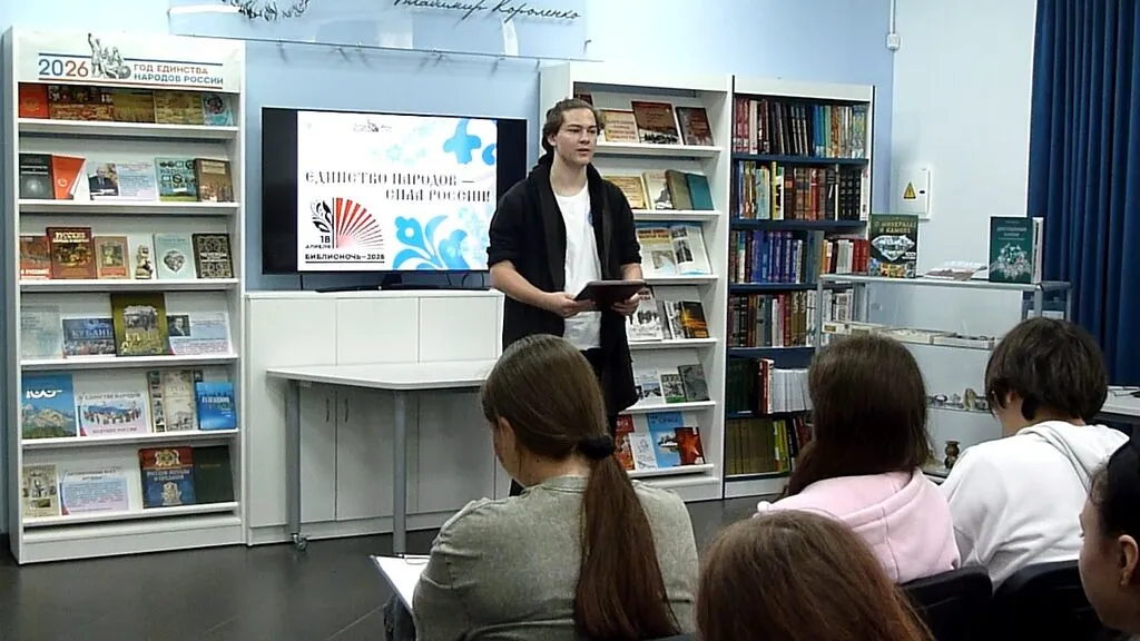 В рамках ежегодная акция «Библионочь-2026» в Центральной библиотеки им. В.Г. Короленко состоялась поэтическая композиция «Мы – дети России. Единство – великая сила». На мероприятии присутствовали студенты геленджикского филиала Краснодарского торгово-экономического колледжа.